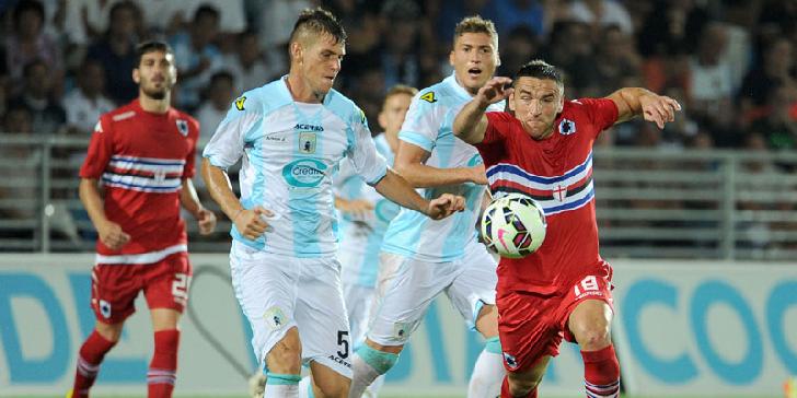 Sampdoria bermain imbang 0-0 dengan tuan rumah Virtus Entella dalam lanjutan ujicoba pramusim jelang Liga Italia Serie A 2014-2015 di Chiavari.